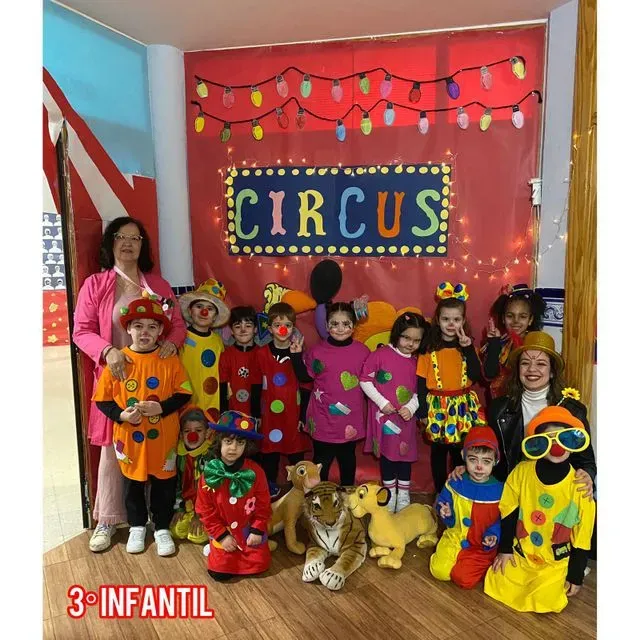 Llegaron los carnavales 24 y este año el colegio se ha convertido en un gran circo con todas sus atracciones. Con magos, con domadores de fieras de peluche, con levantores de pesas de papel, con equilibristas del suelo y mimos de cara blanca, con payasos y músicos, y con mucha alegría.